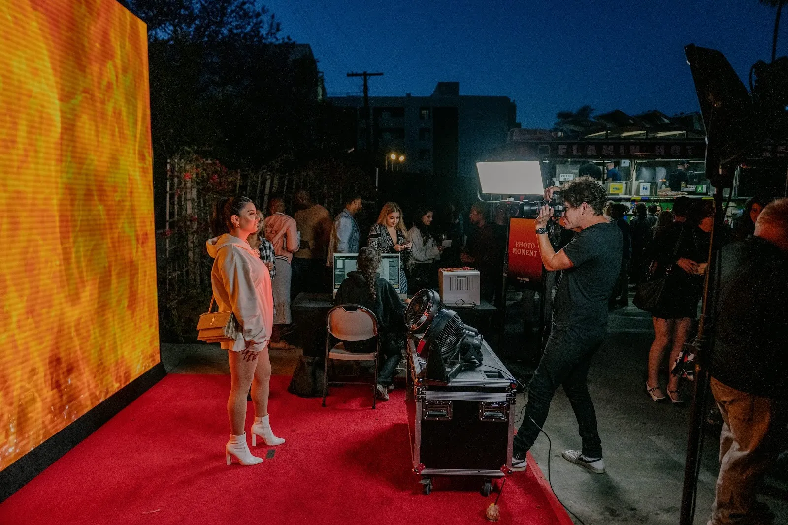 Guests were able to pay homage to both the classic and current Firestarter poster with our statement LED photo booth that placed them in the flames, just like Charlie, blowing hair and all. Guests lined up all night long to participate and place themselves inside the iconic image. The Tommy B was the master behind the lens, providing printed takeaways and an instantly shareable digital copy.