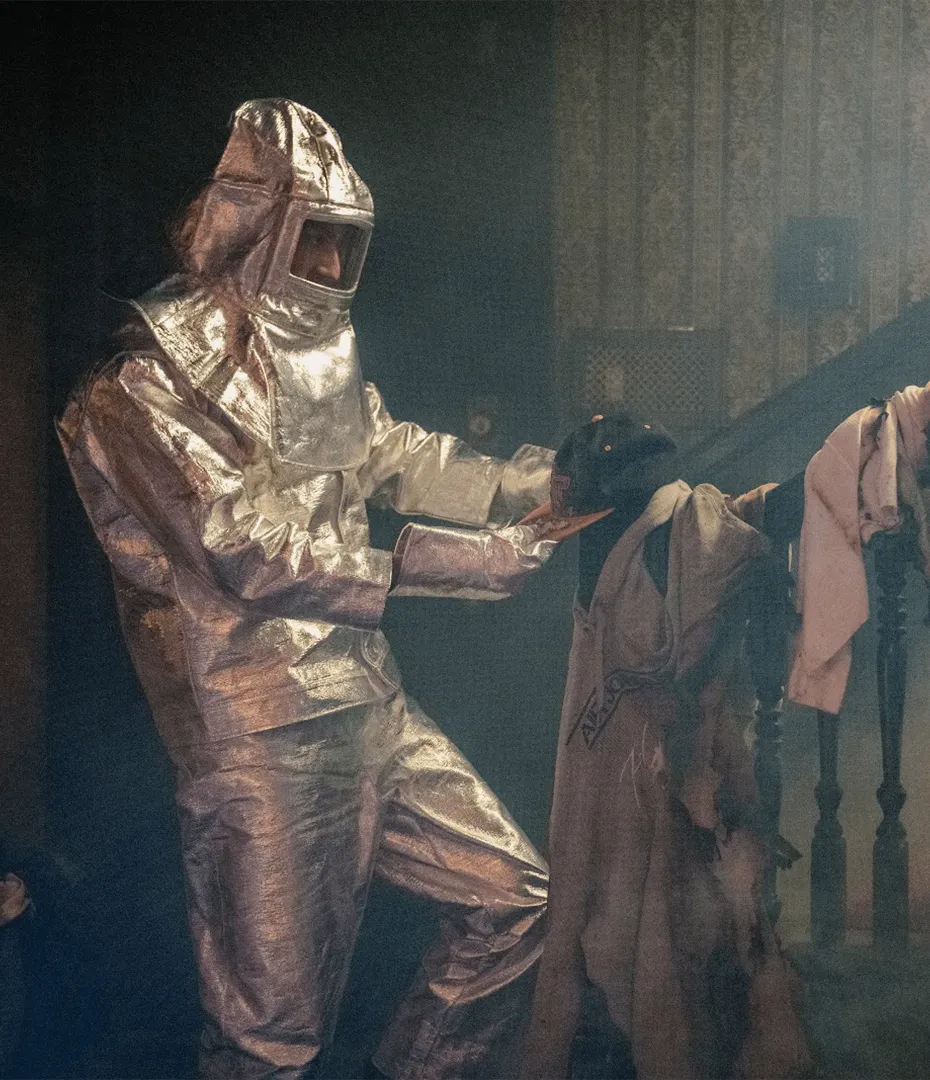 Upon arrival, guests were immediately welcomed onto both the scene of Charlie’s accident, through artful set dressing and in-world details, and the Firestarter film at large with massive fire projections and a burning logo. DSI Agents in their combat gear and fire-protective suits are on the hunt for Charlie, or any clues to her whereabouts. They were examining the items throughout the night and were not afraid to interrogate and interact with guests; Charlie did her best to stay hidden.