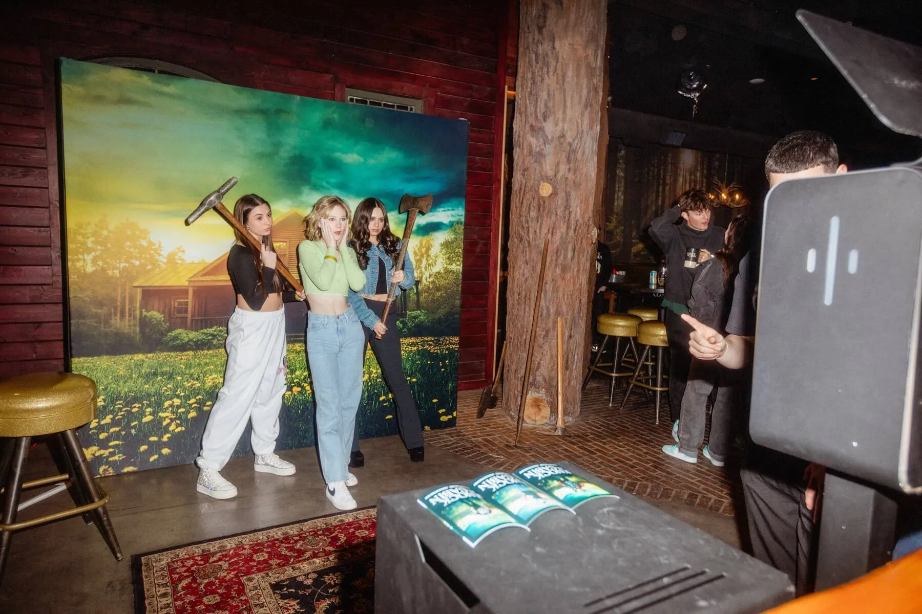 IHC brought our party expertise to transform the venue into a seamless blend of cabin aesthetics and ominous decor, perfectly capturing the movie's catastrophic events. With DJ Domo pumping up the energy, guests, including Metro Boomin himself, embraced their inner lumberjack with axe-throwing lessons from the legendary Mo.