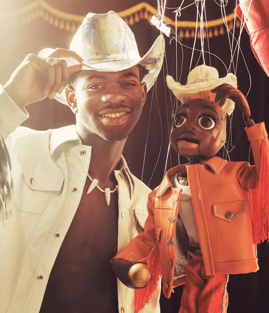 IHC commissioned The Bob Baker Marionette Theater to craft a custom Lil Nas X marionette using an original mold and their classic technique to allow full range of motion for his boundary pushing dance moves. IHC worked alongside the theater to cast a variety of additional puppets, whimsical backdrops, and choreography to accompany each song off the EP for a full 25 minute show. Custom designed neon signs provided further immersive and stylistic touches.
