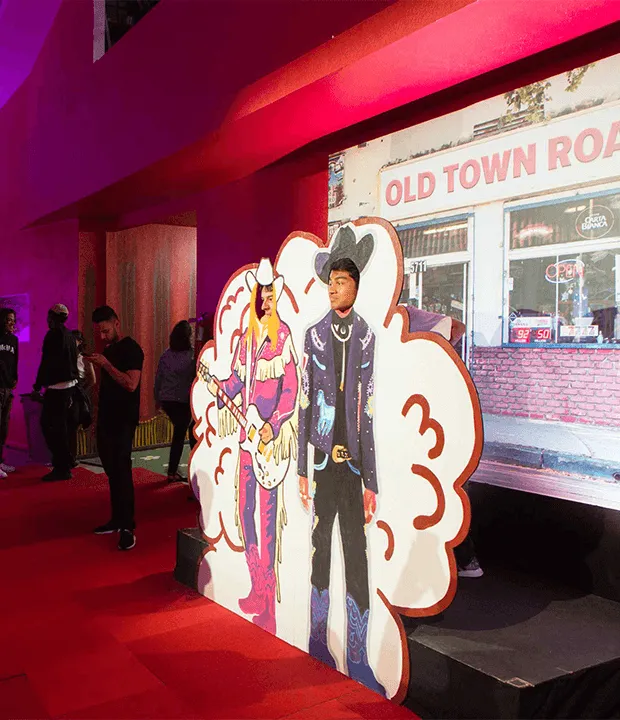 Seven special photo moments allowed guests to insert themselves into backdrops from the widely popular “Old Time Road” music video as well as onto the album cover. Lil Nas X himself helped curate the ideas behind many as each was paired with a song off the EP itself. Guests roamed, took pics and posted, generating several million impressions.