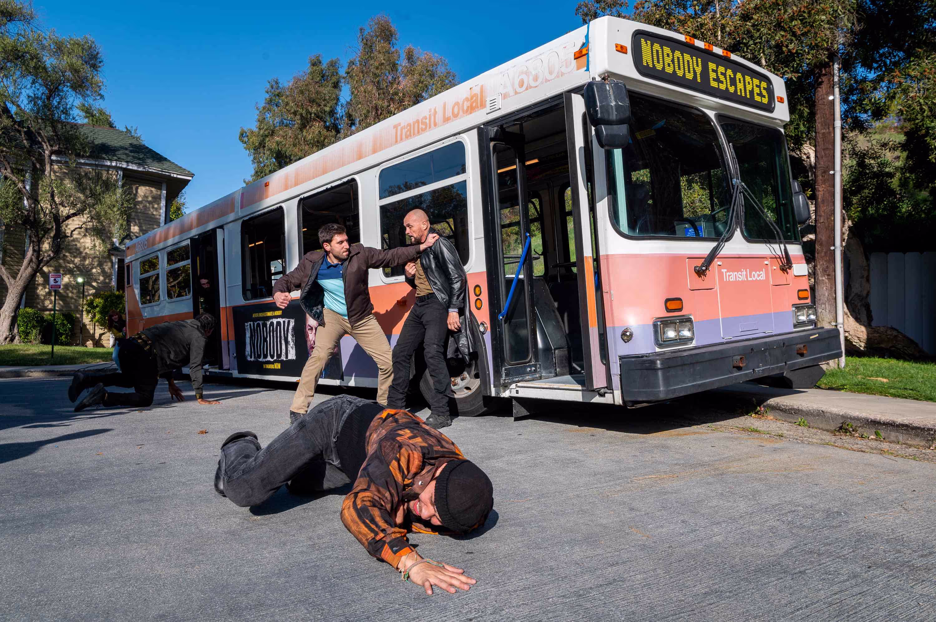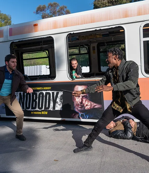 VIP guests were transported into the world of Hutch Mansell (Bob Odenkirk) and his secret dark past through an action-packed immersive theater drive-through experience that all went down at the iconic Universal Studios Backlot.
