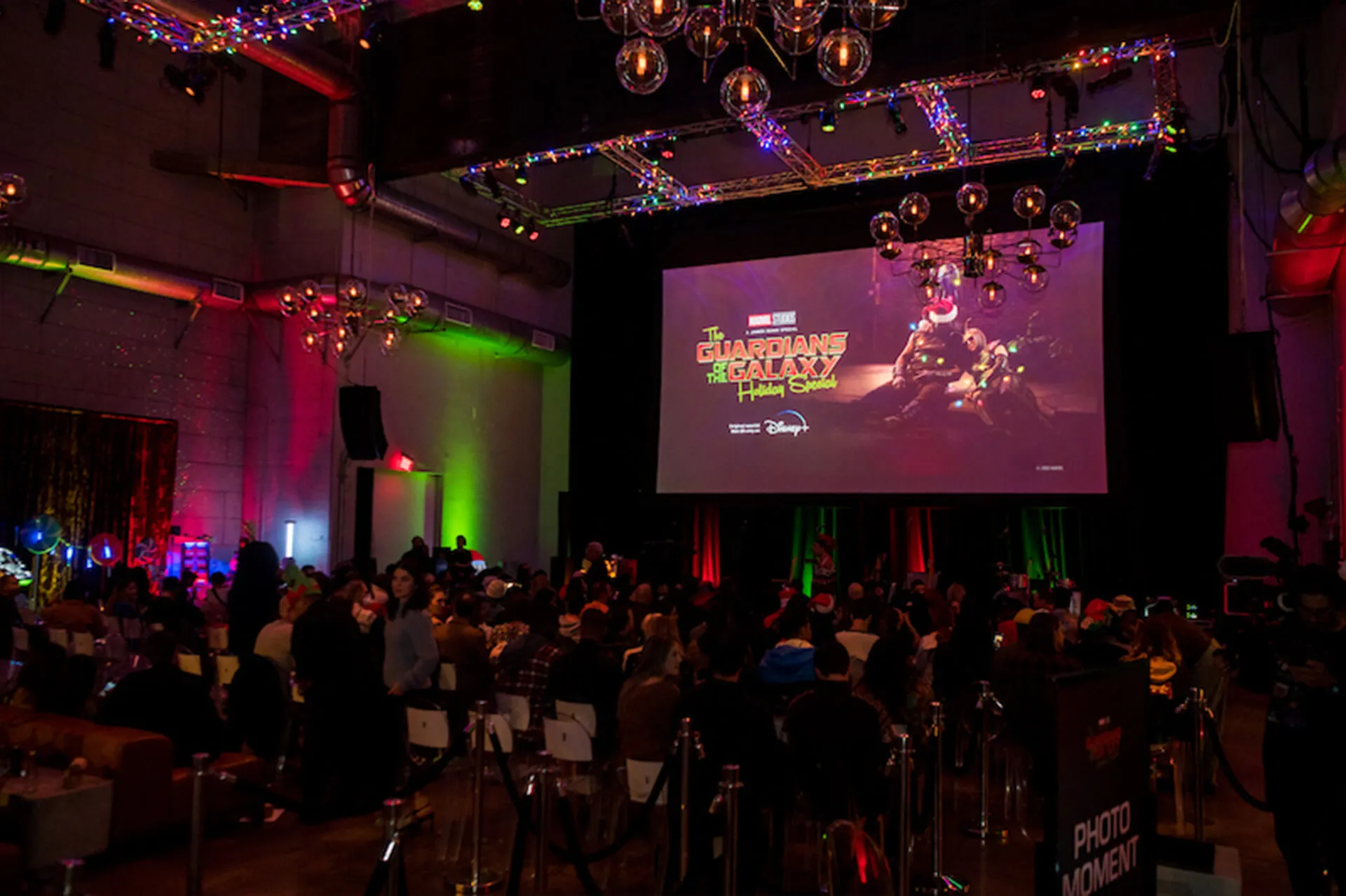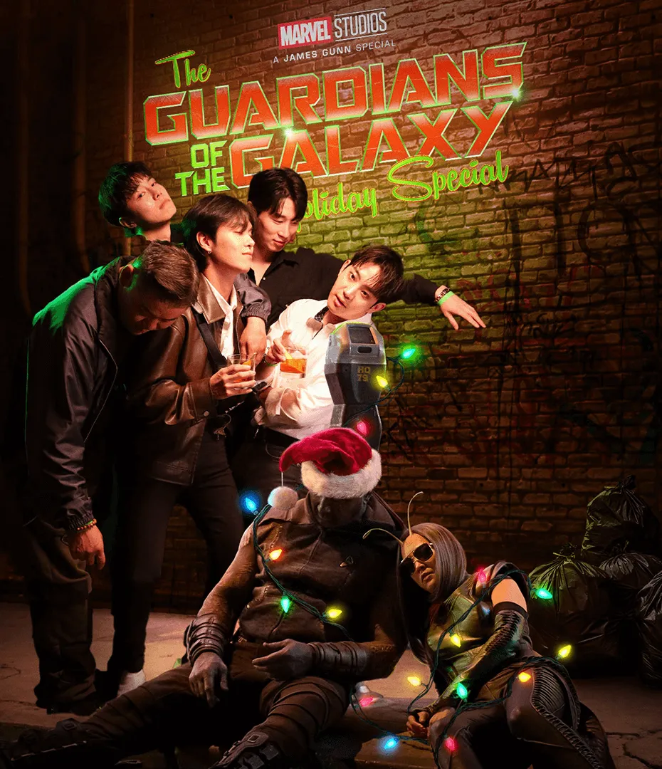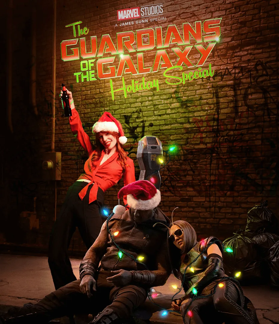 As a feature, we produced an epic 4D photo experience alongside our partner Tommy B allowing guests to recreate the Holiday Special’s poster. Created out of a mix of practical set pieces and digital overlays, fans stepped up to pose in front of a brick wall on a sidewalk, while a passed-out Drax and Mantis were photoshopped into the frame.