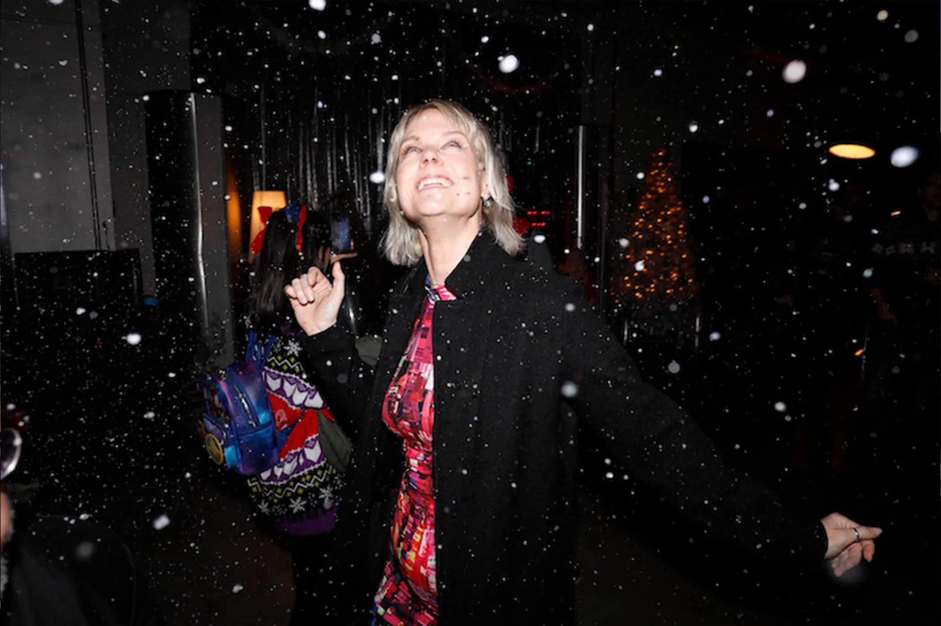 Immediately after the screening, the band Black Crystal Wolf Kids treated guests to covers of holiday classics, including two original songs from the film, ending with a surprise snowstorm moment queued by Mariah Carey’s “All I Want For Christmas Is You.”