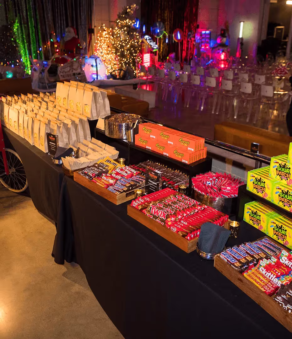 Customized items included a Groot candy cane machine, a life-size Cosmo, and Guardians of the Galaxy logo mantle with stockings dedicated to each character from the film. Special attention to detail was considered at every corner of the event as guests enjoyed warm holiday-themed signature cocktails served by bartenders decked out in Christmas attire while dancing under a string of vibrant lights!
