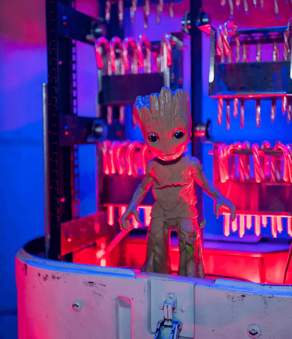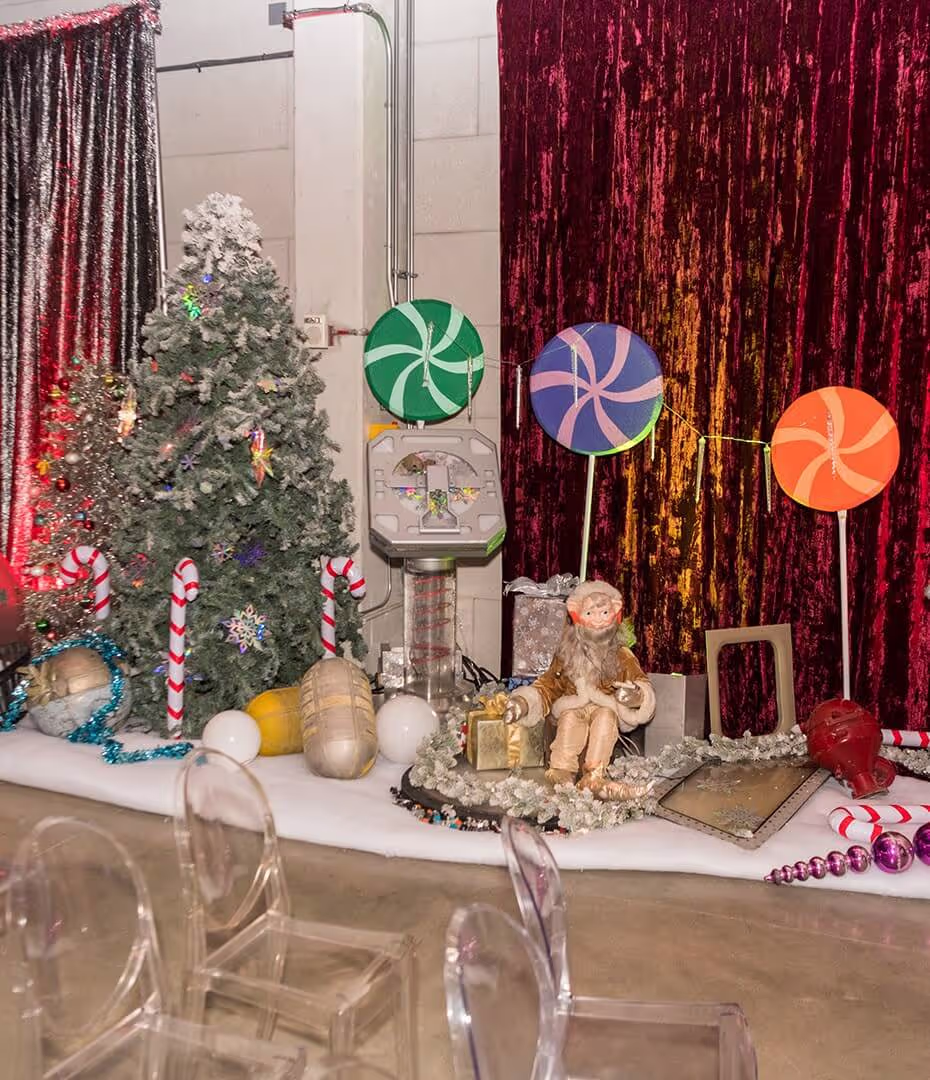 We drew inspiration from scenes within the special feature, bringing Mantis’ vision of Peter Quill’s perfect Christmas to life. The main room at Neuehouse was transformed into a Winter Wonderland of Guardians cheer, combining traditional holiday decor with animatronics.