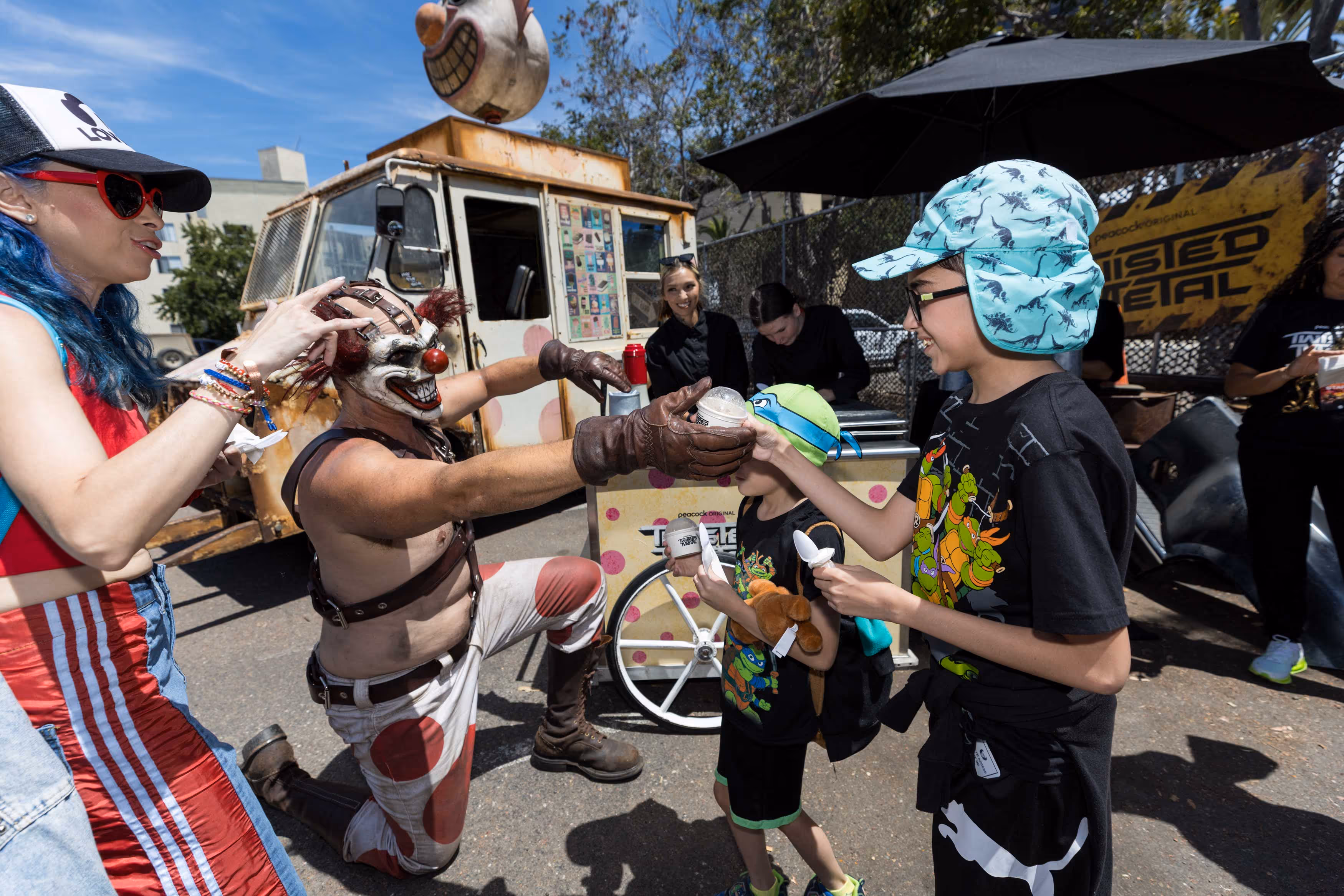 In a city overflowing with fandoms, Twisted Metal didn’t just show up, it crashed the party. From the moment fans stepped into the line, the chaos had a pulse. We turned the queue into part of the experience: roaming characters heckled and hyped the crowd, fans belted karaoke duets with Sweet Tooth, and interactive in-world sets featuring real props from the show pulled guests directly into the universe. Photo booths, surprise giveaways, and free ice cream kept the energy high while delivering shareable moments at every turn.