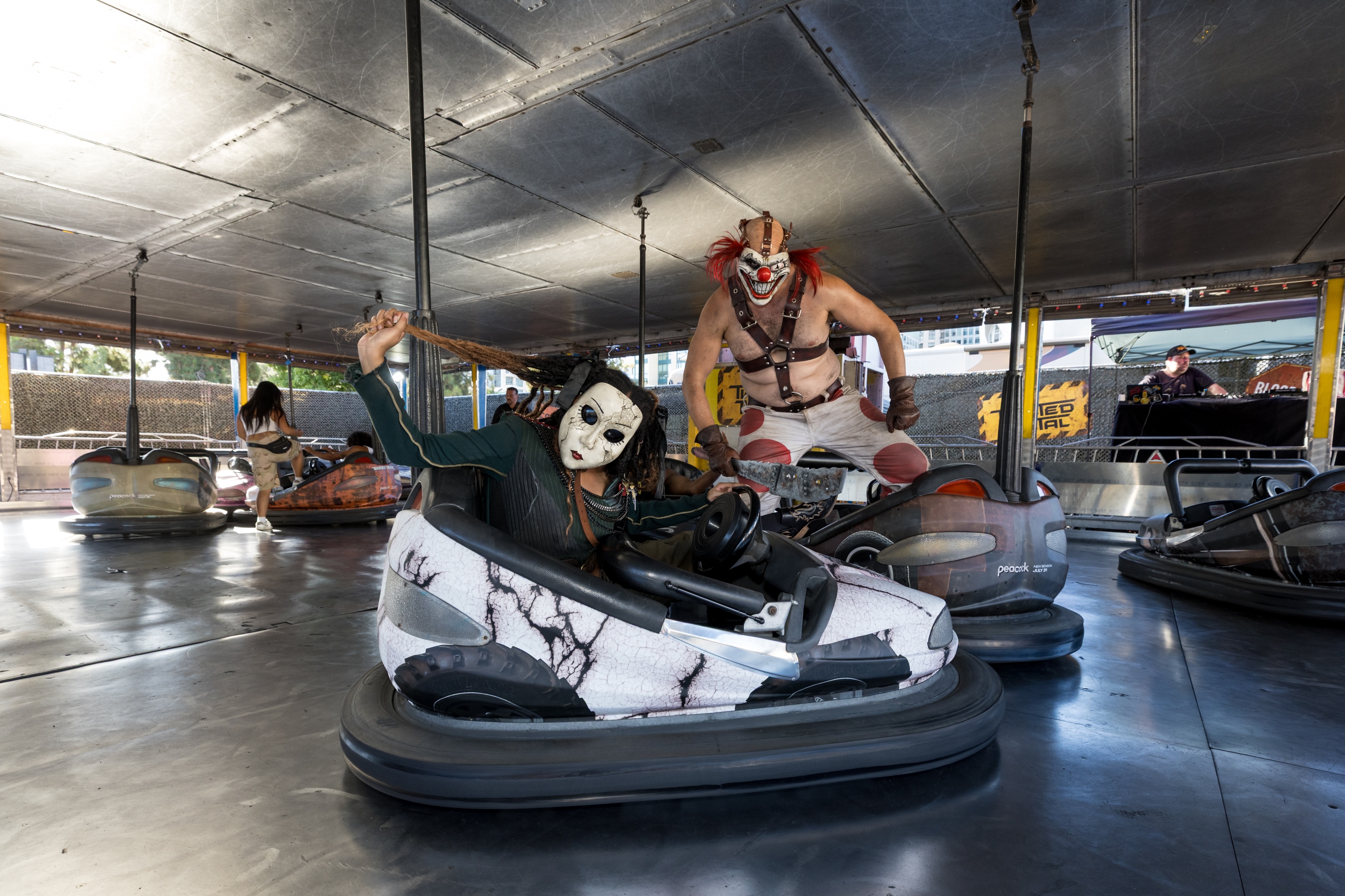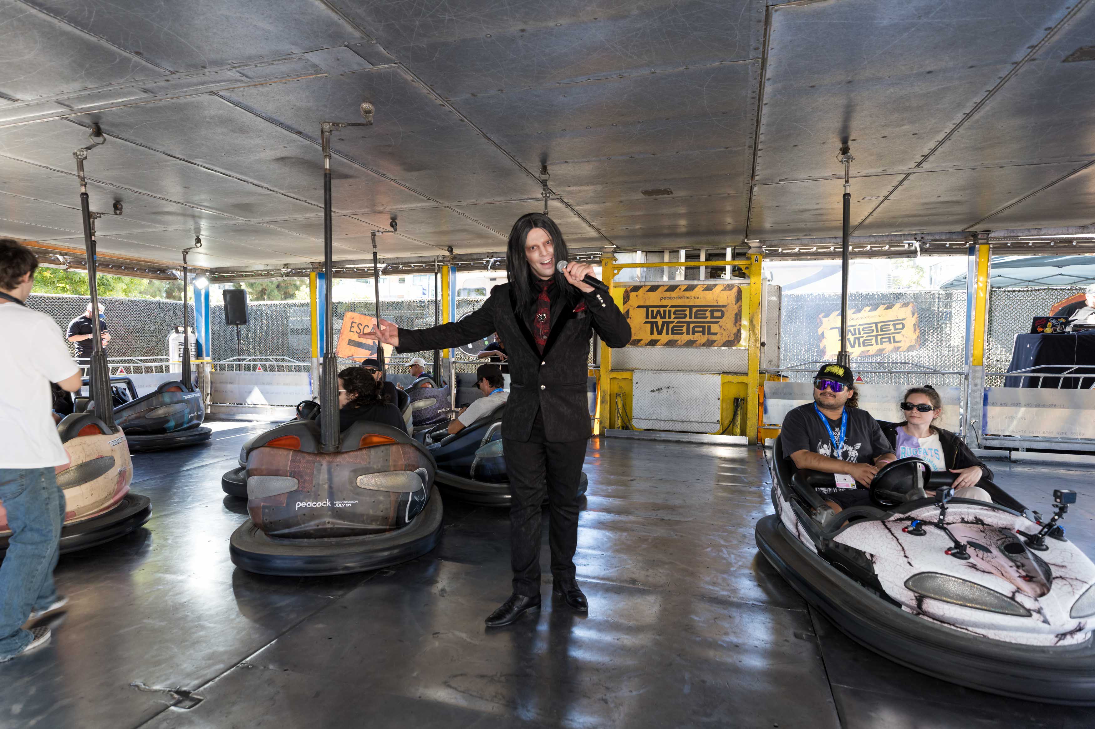 Inside the arena, Twisted Metal exploded to life. Led by in-world MC Calypso and fueled by a live DJ, fans stepped into custom-built bumper cars inspired by the show’s most iconic vehicles. Cryo cannons blasted icy fog as engines revved and metal clashed, transforming a classic carnival ride into a high-stakes demolition derby straight out of Season 2. Every detail, from the arena buildout to the character-driven commentary, was designed to turn passive fans into participants and spectators into storytellers.