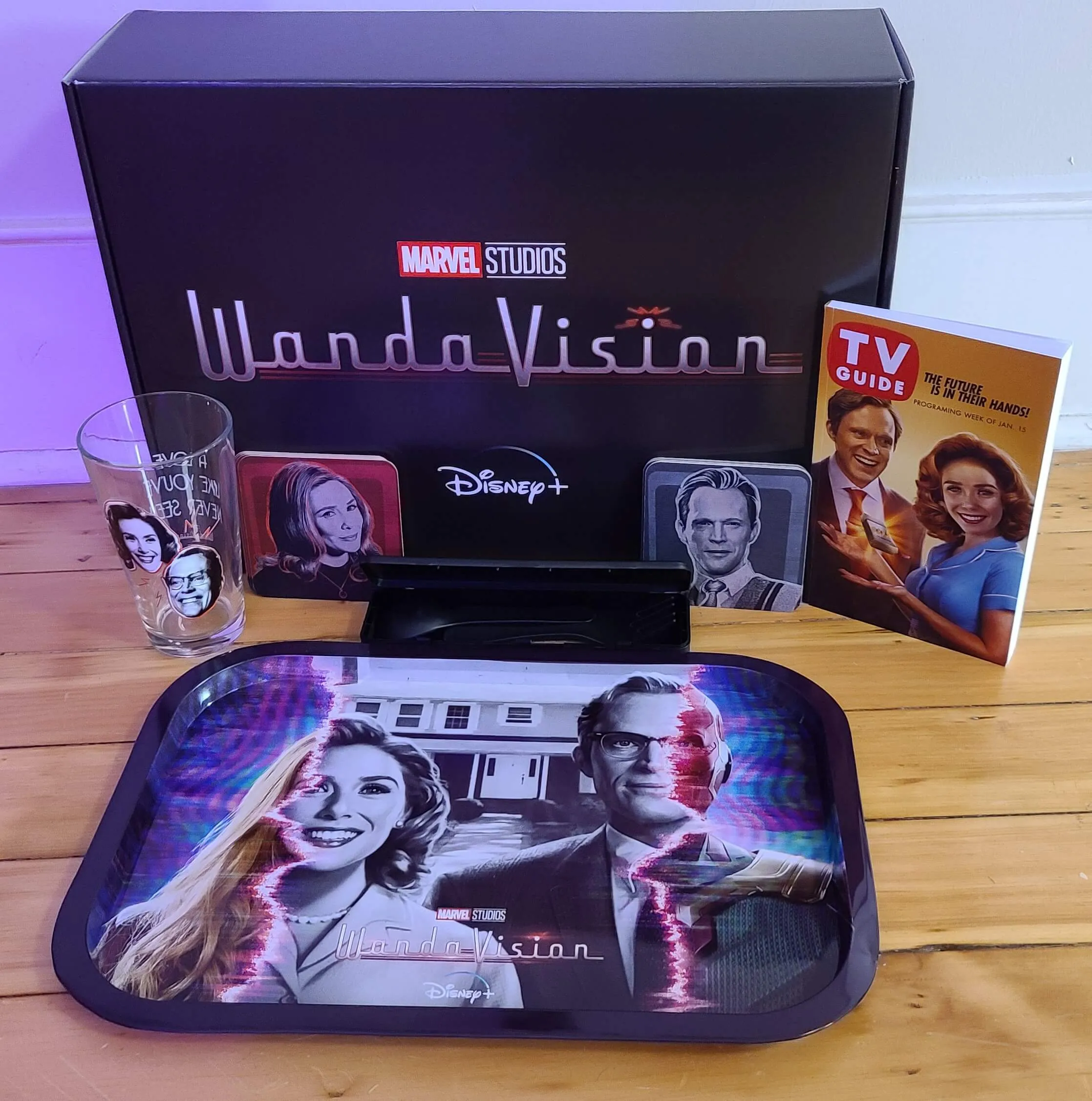 Featuring a branded TV tray, TV Guide notebook, pint glass, reusable utensils and coasters, the special box contained everything one would need to watch the mysterious show safely at home / in period-correct style.